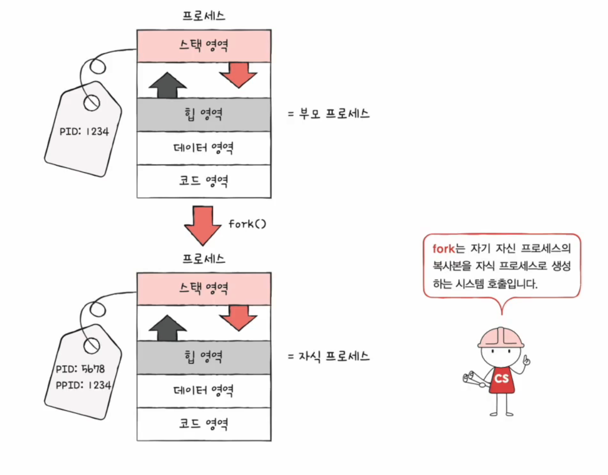 이렇게 프로세스를 생성하는 기법을 Fork-exce 구조라고 합니다.
